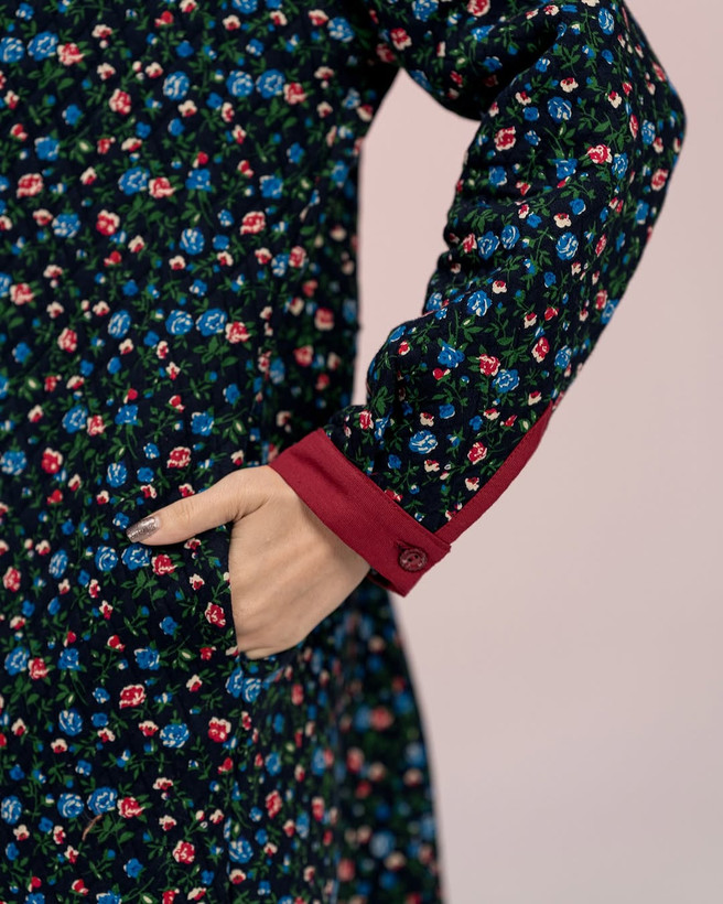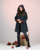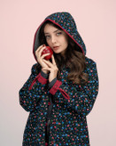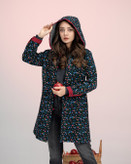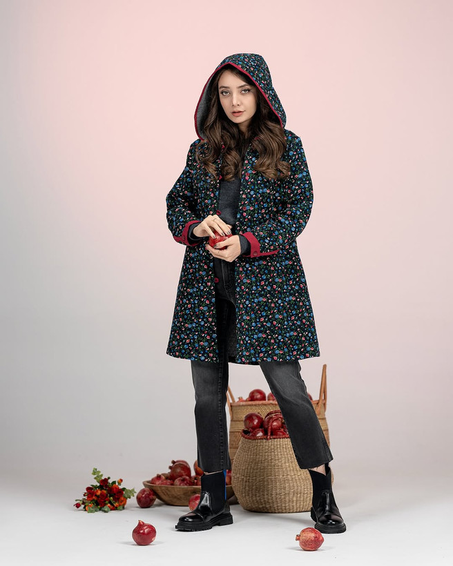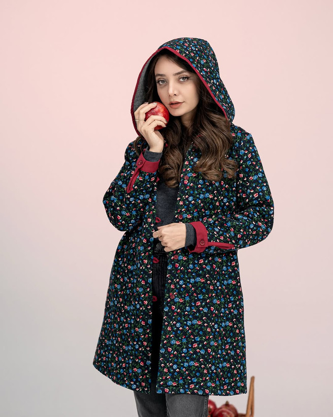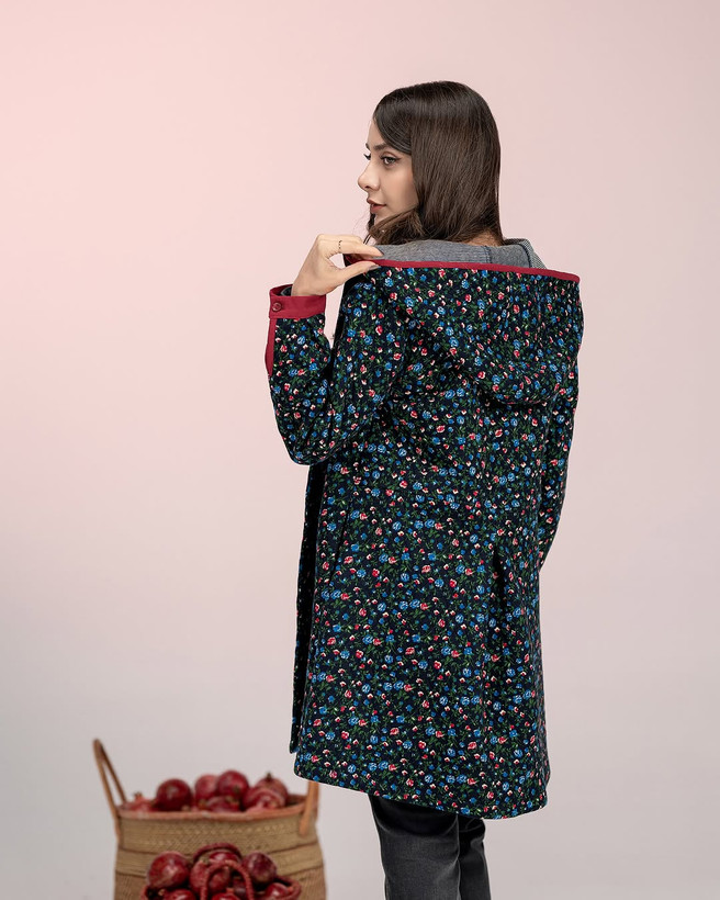 پالتو کوتاه کلاهدار رنگ مشکی گلدار