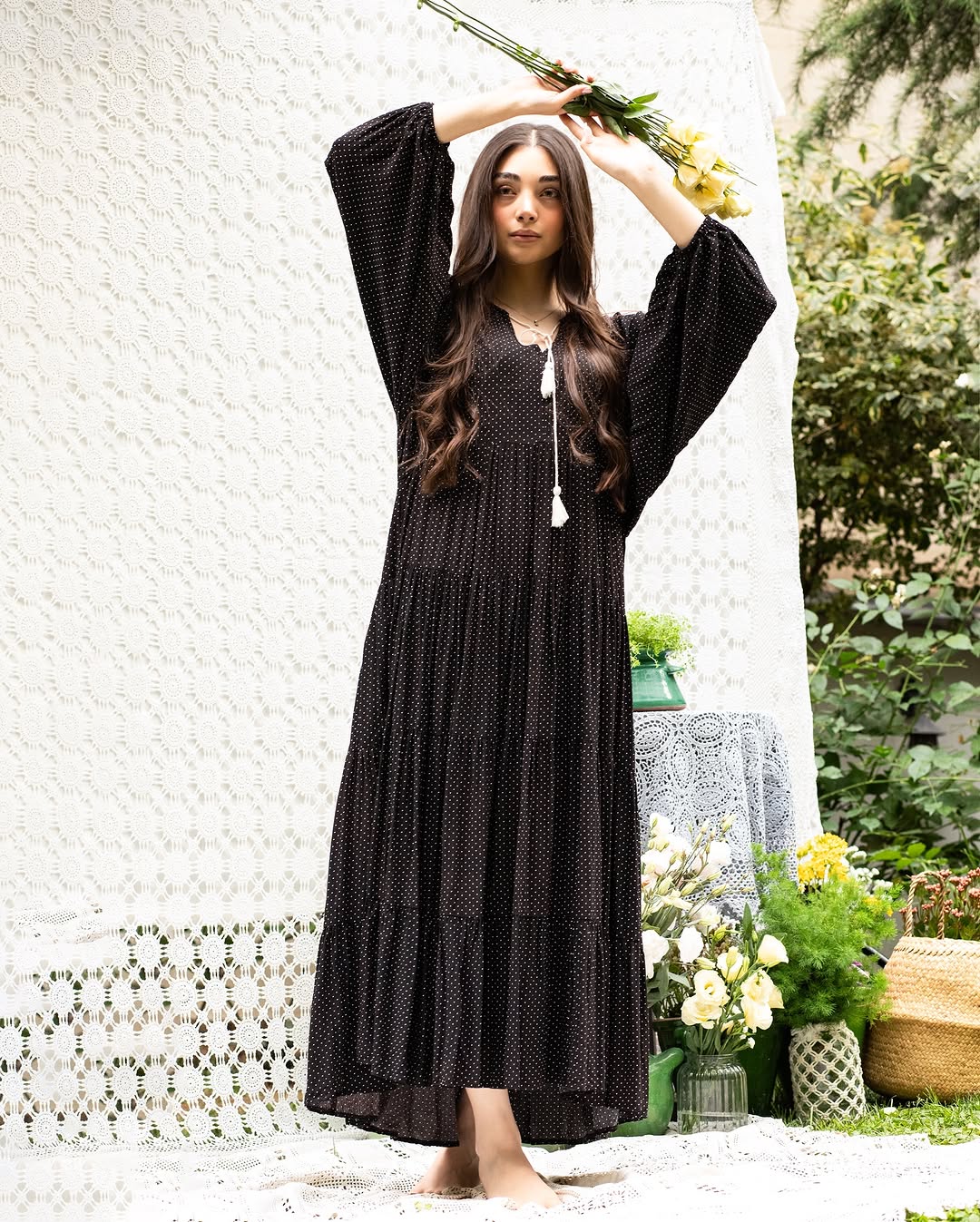 دستهبندی: پیراهن بلندجنس: ویسکوز نخ بسیار سبک و خنک و لختقد: ۱۳۰ سانتیمتر و بدون آبرفتسایز: فری سایز مناسب تا سایز ۴۸