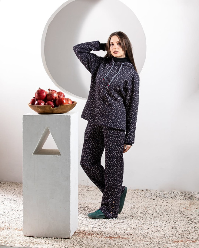 ست هودی و شلوار زنانه جنس تریکو سه لایه رنگ سورمه ای