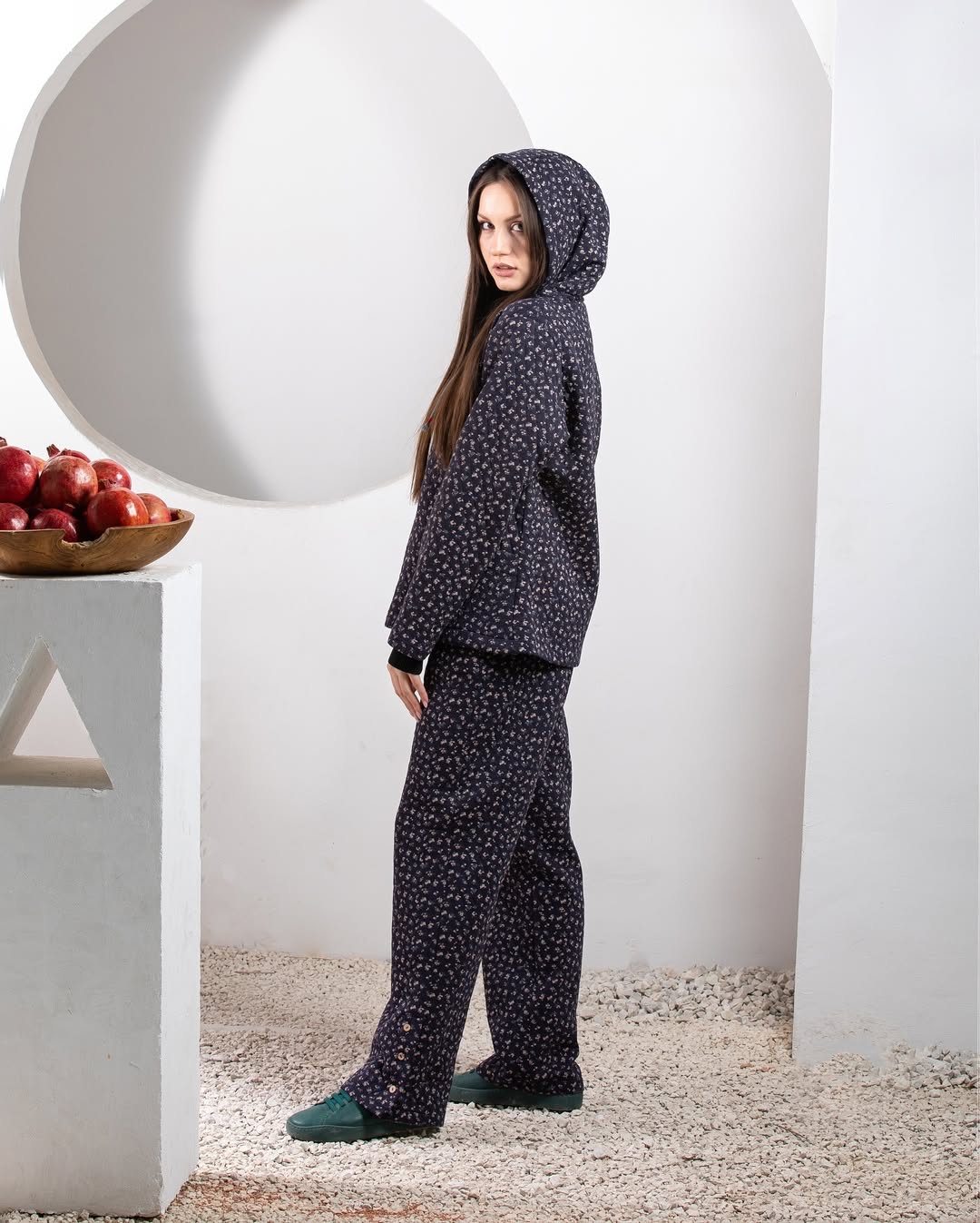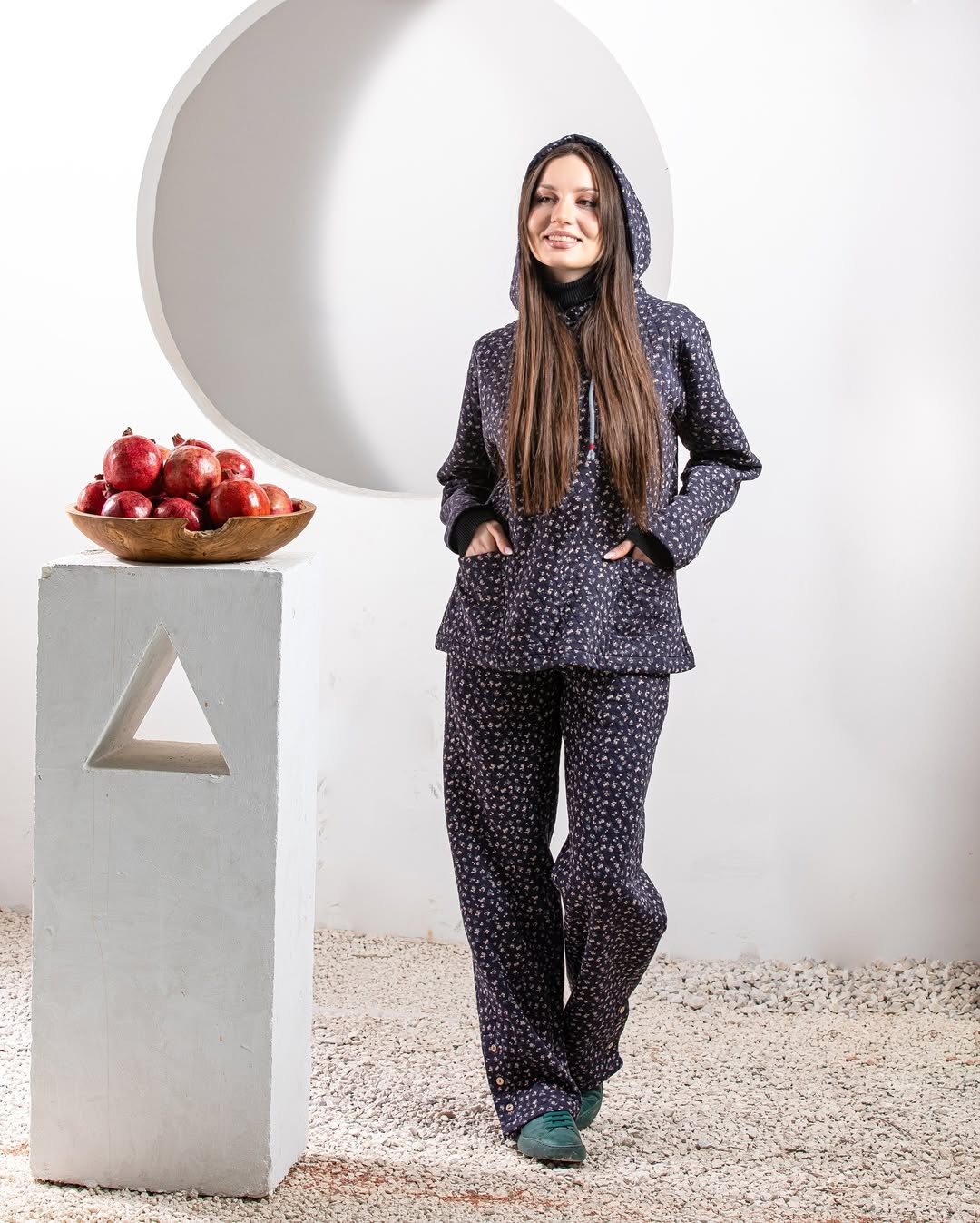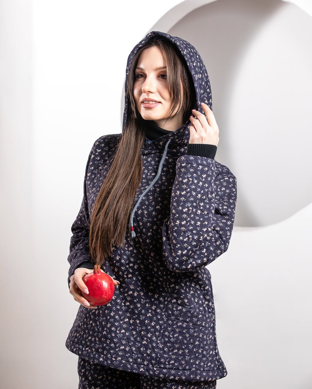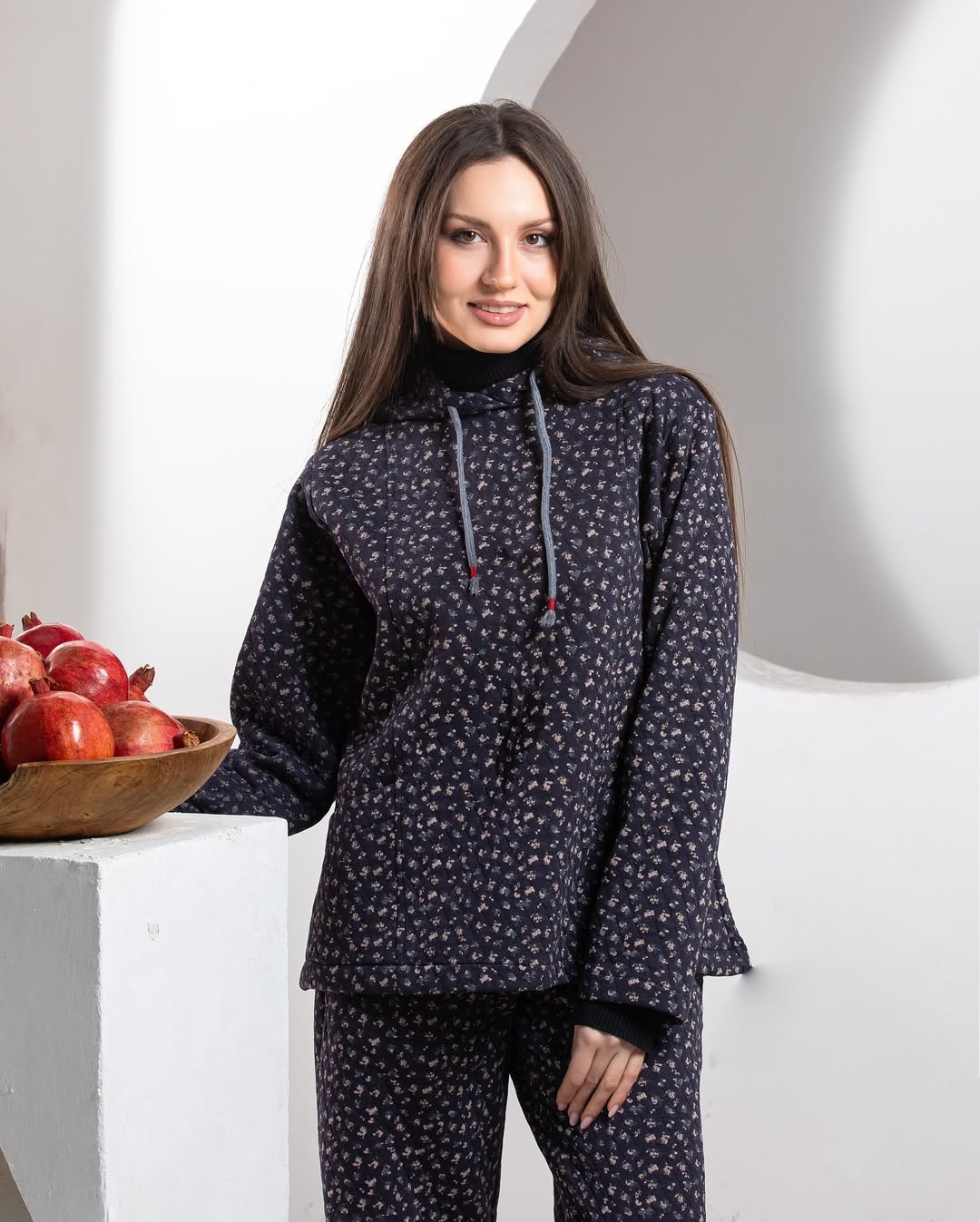ست هودی و شلوار زنانه جنس تریکو سه لایه رنگ سورمه ای