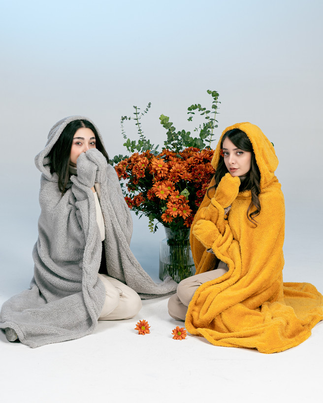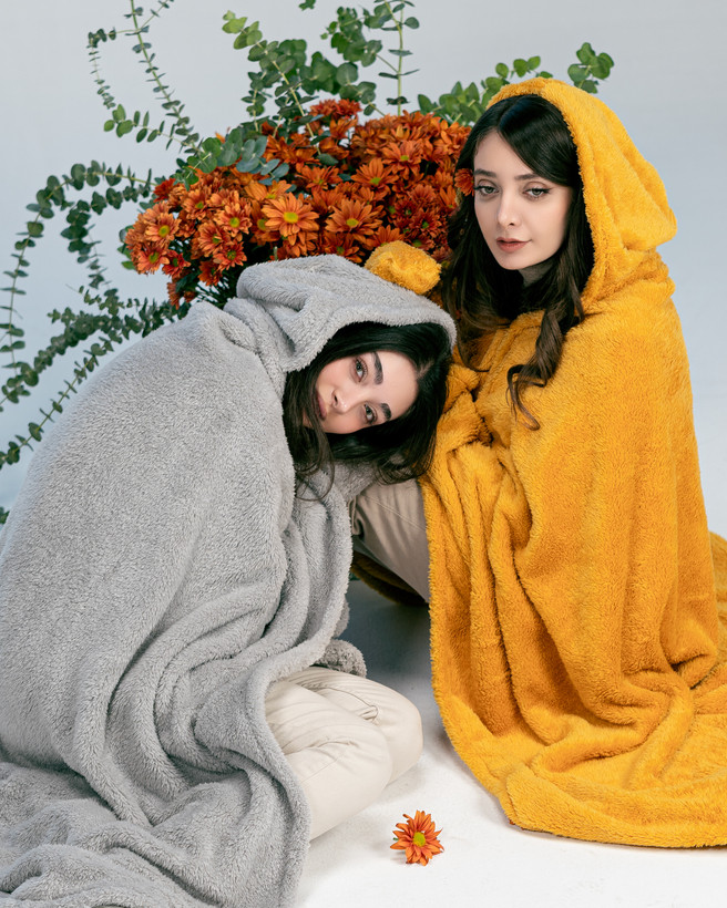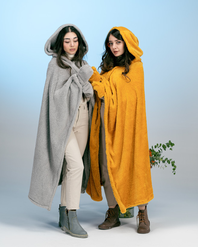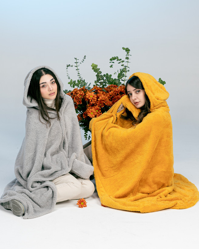 پتو تن پوش فری سایز رنگ طوسی و زرد