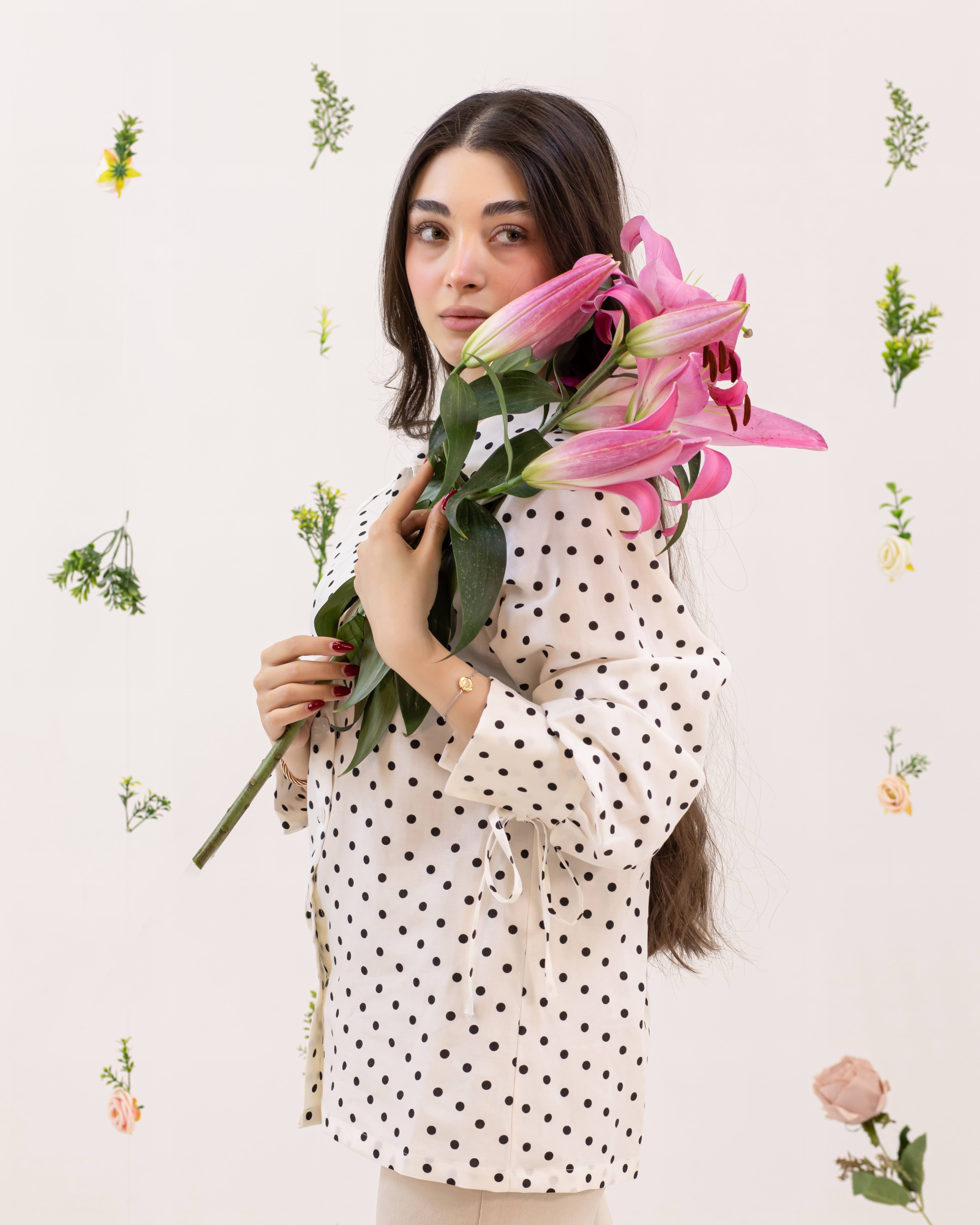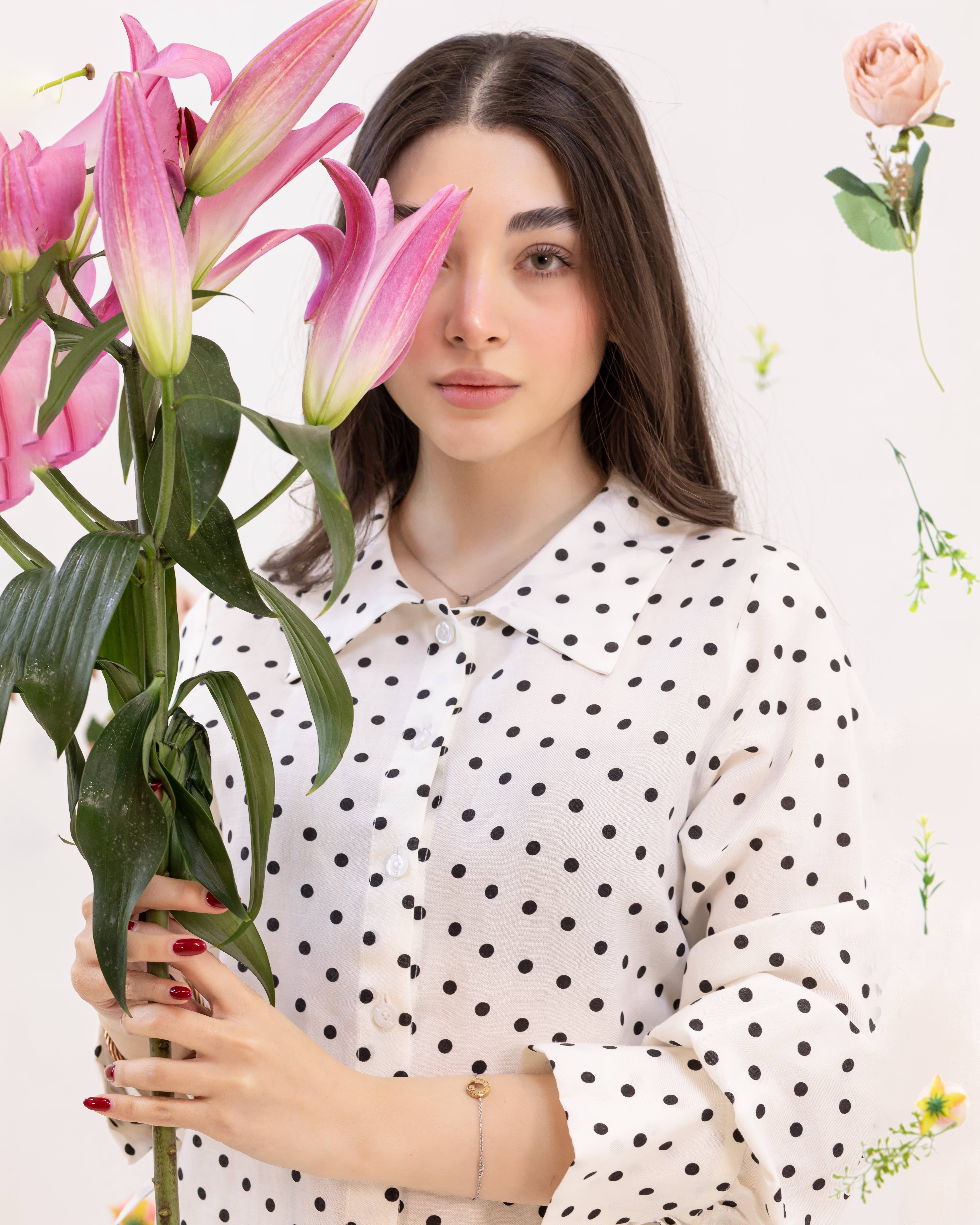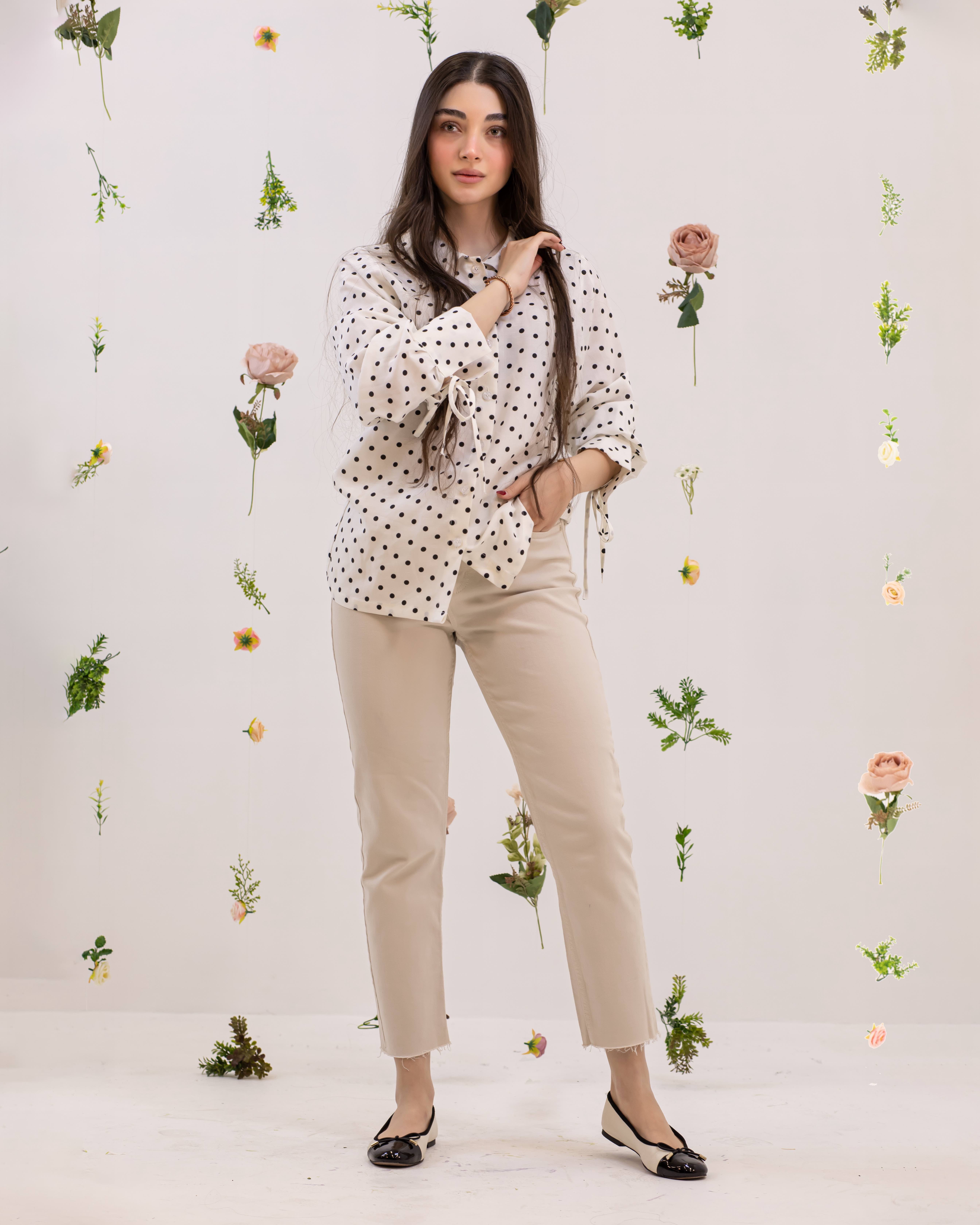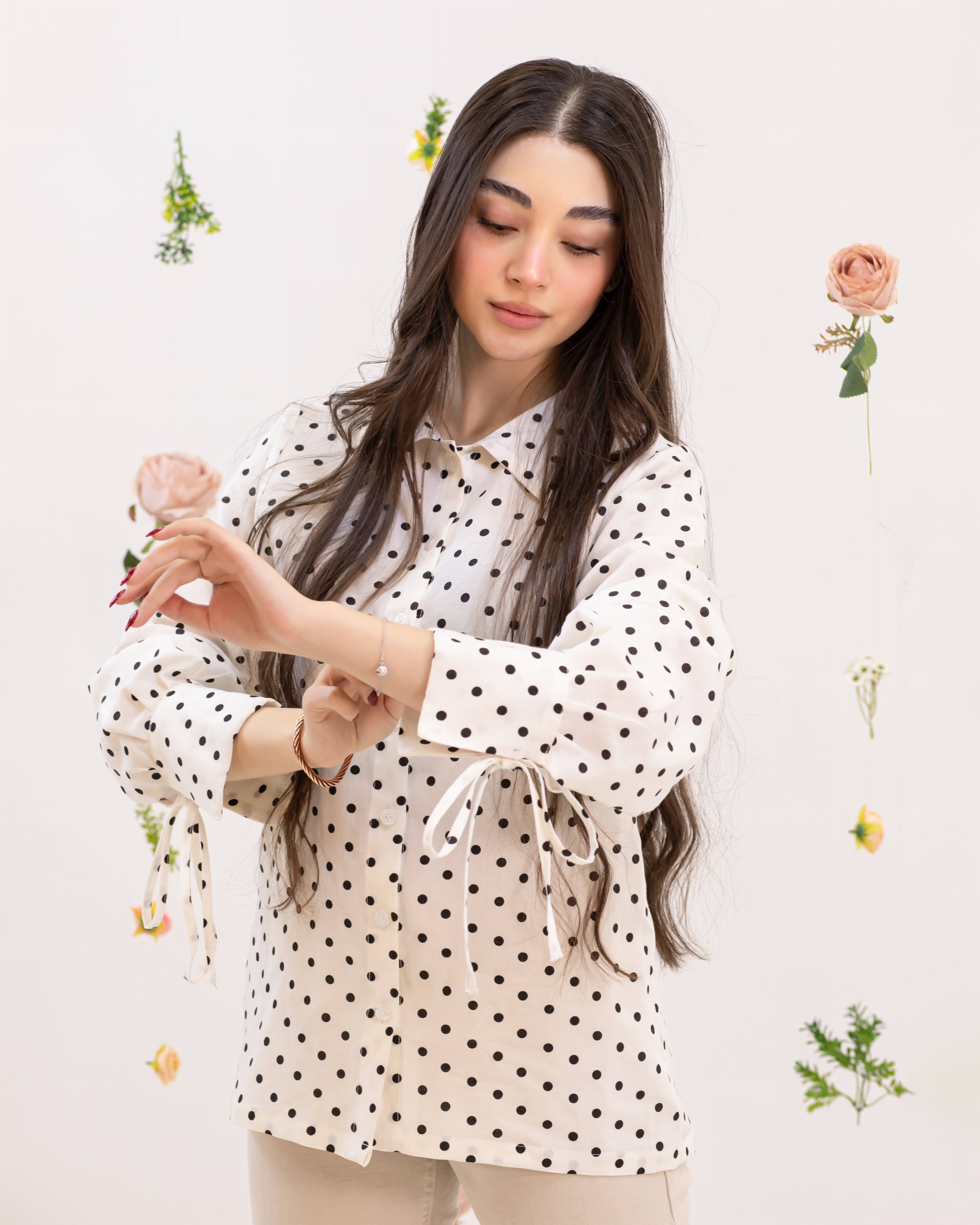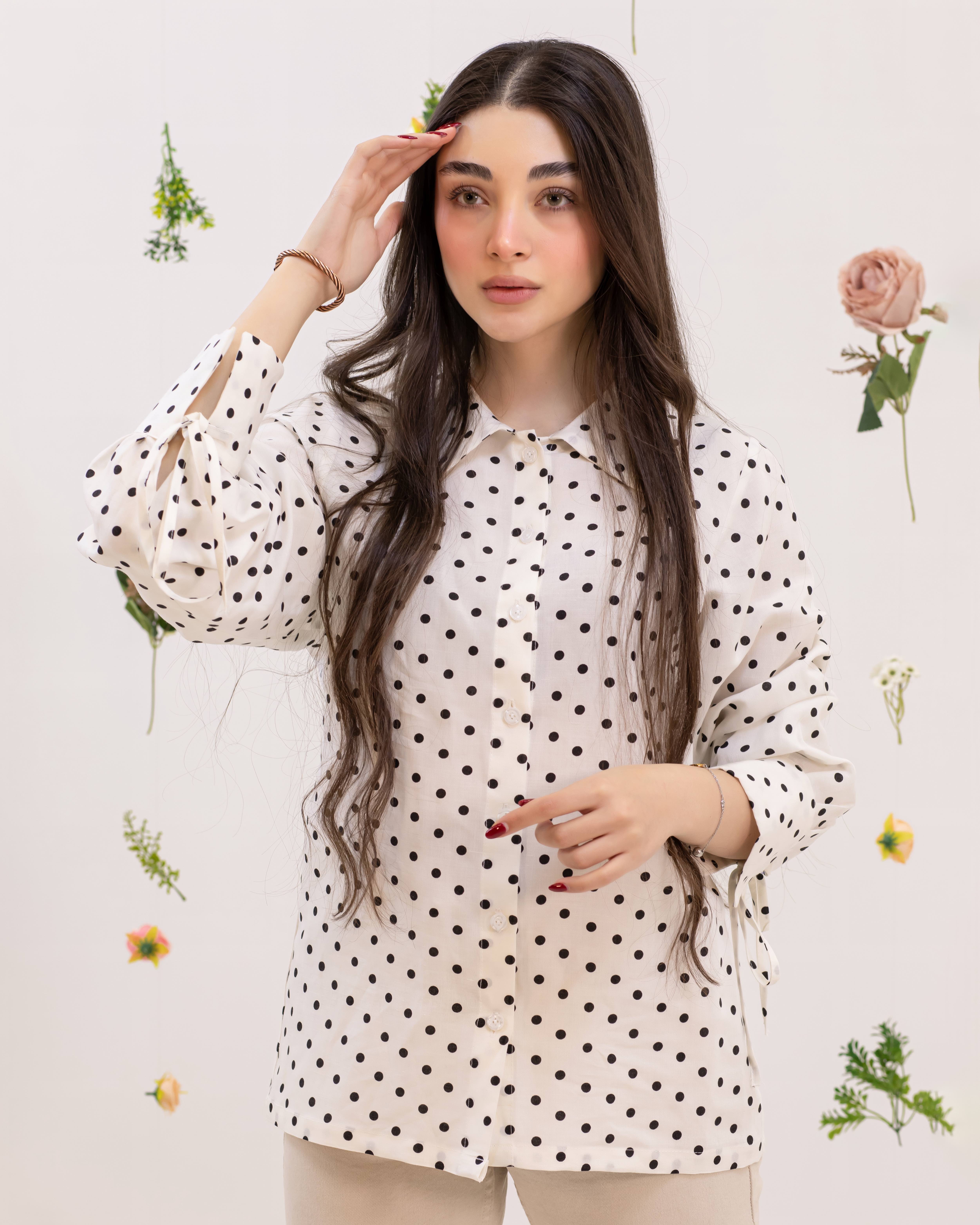 شومیز سفید با خال مشکی لینن