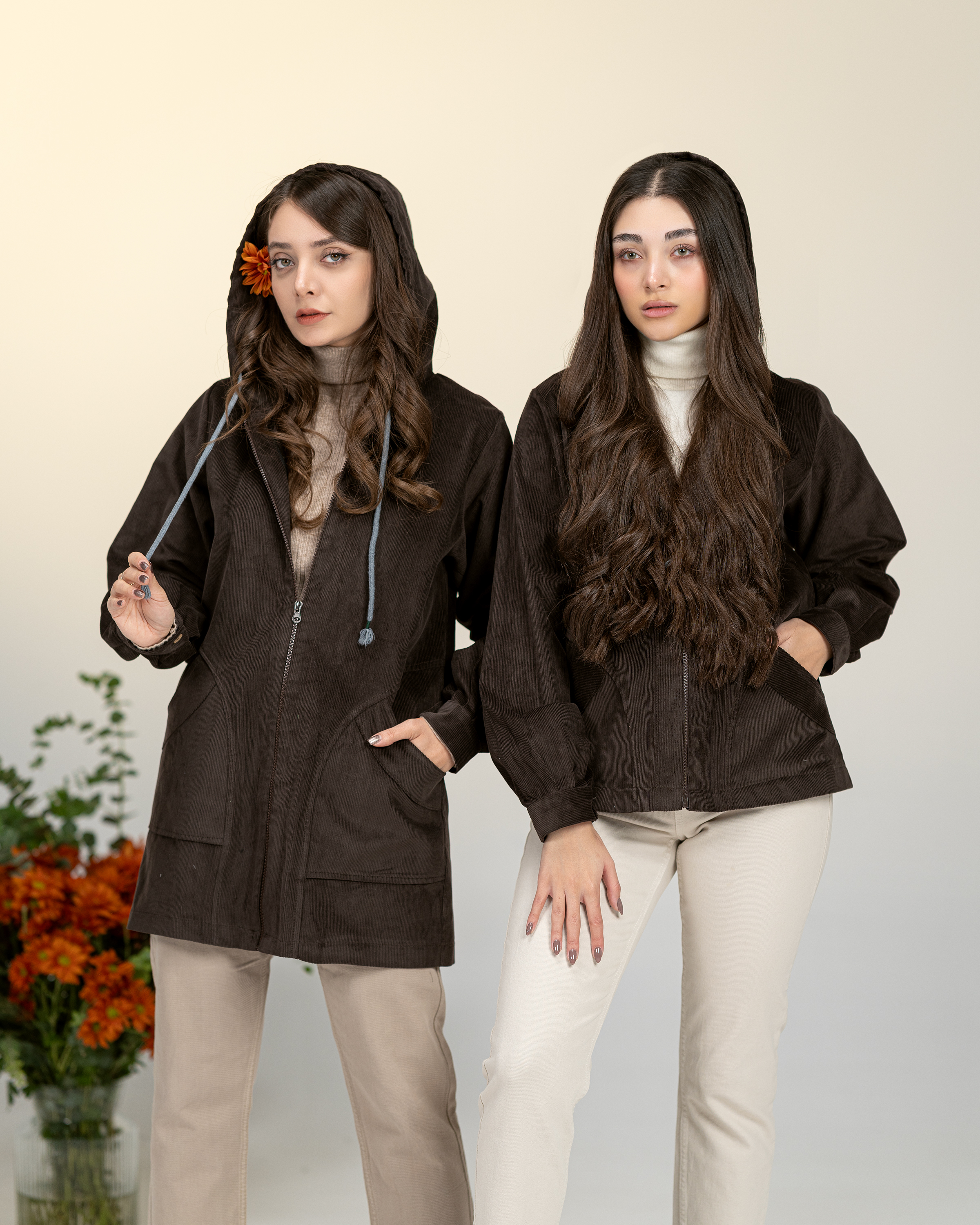 سویی شرت کلاهدار و زیپدار مخمل کبریتی رنگ قهوه ای کد ۲۸۱