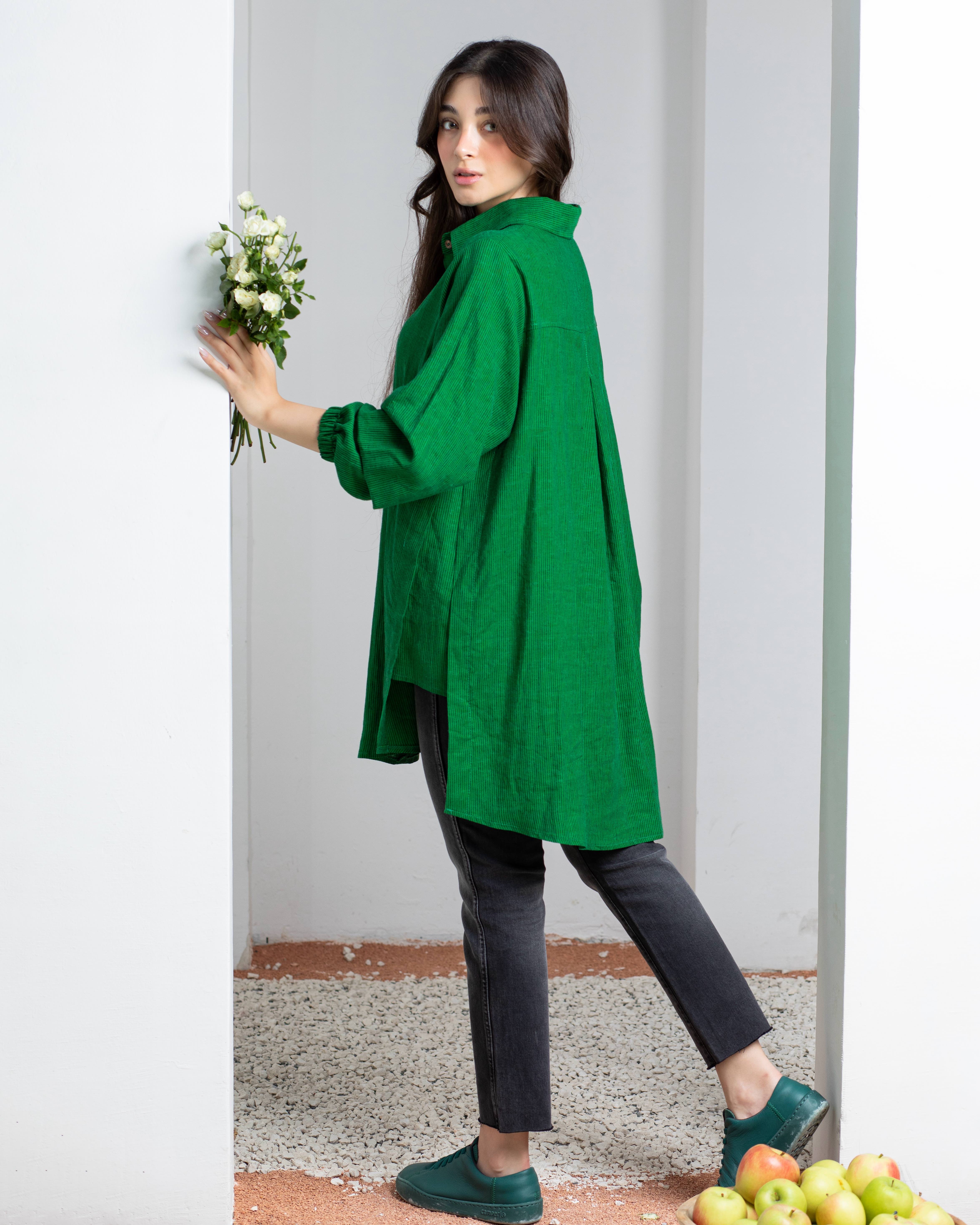 دستهبندی: شومیزجنس: لینن گرم بالا وارداتیقد: قسمت جلو ۷۸ سانتیمتر و قسمت پشت ۸۲ سانتیمترسایز: فری سایز با دورسینه ۱۱۲ سانتیمتر