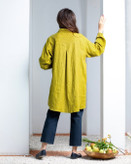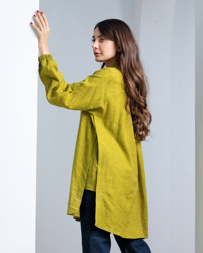 شومیز لینن فری سایز راه راه ریز رنگ زرد