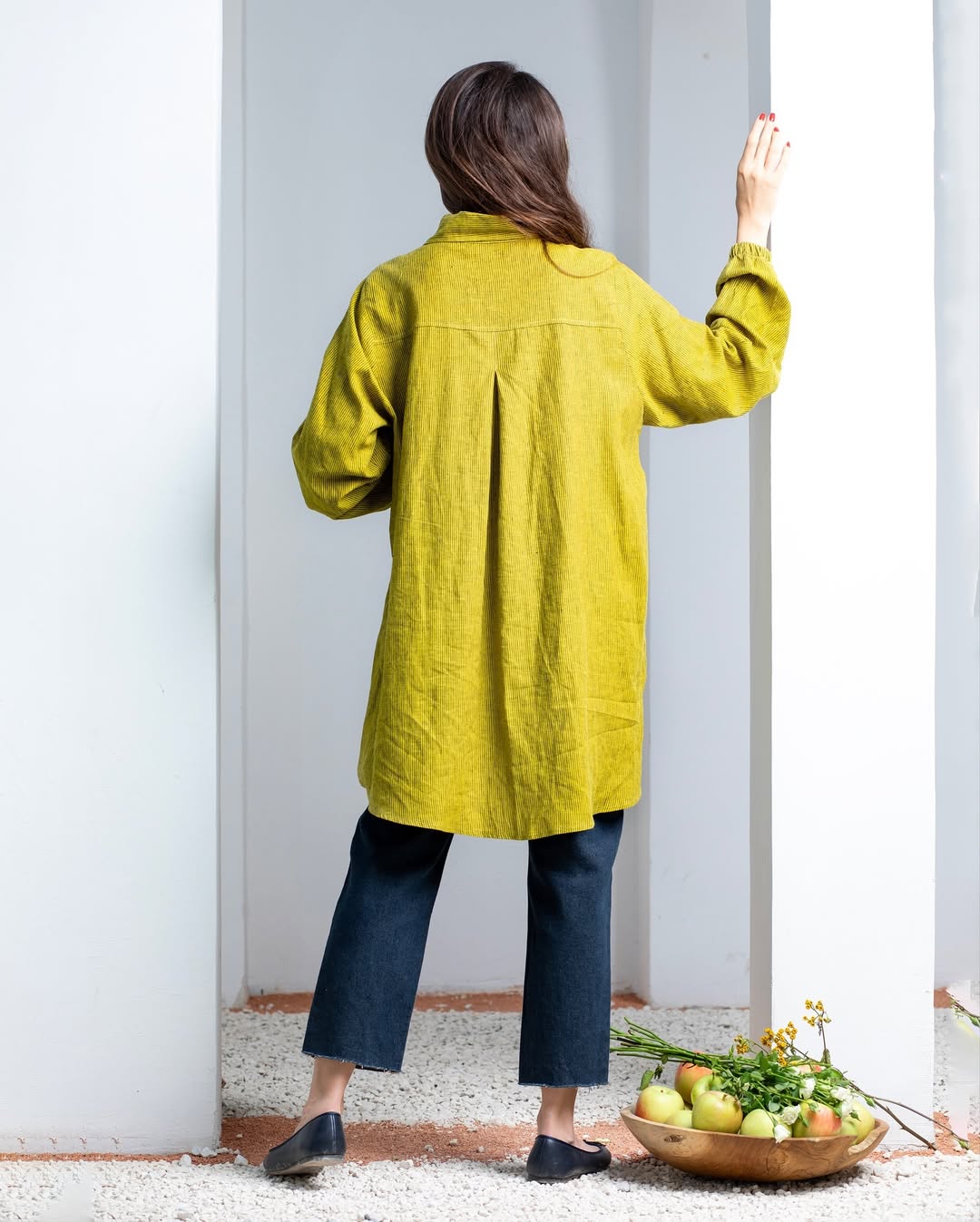 شومیز لینن فری سایز راه راه ریز رنگ زرد