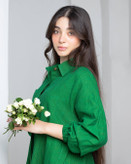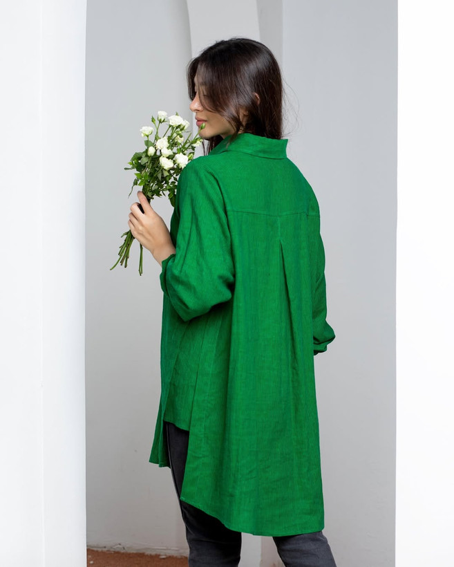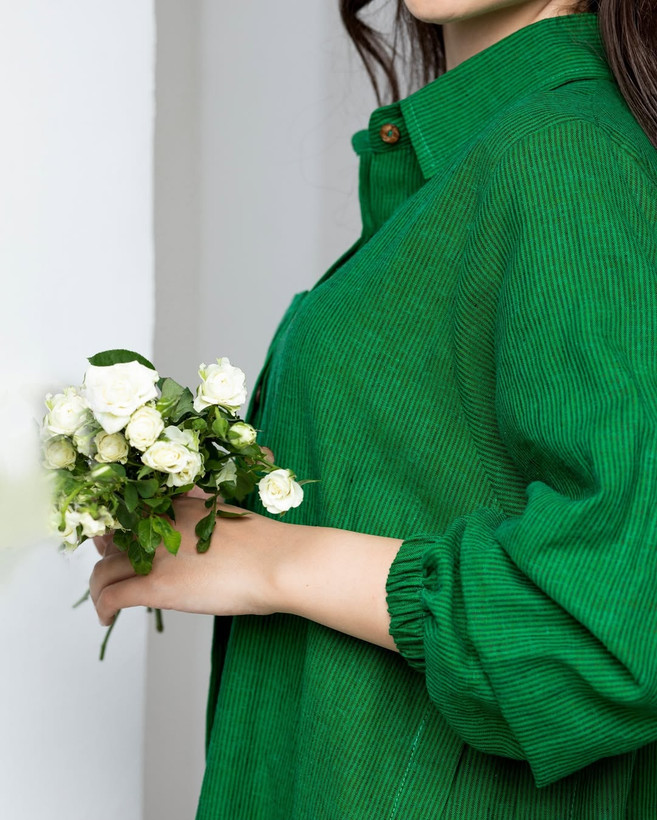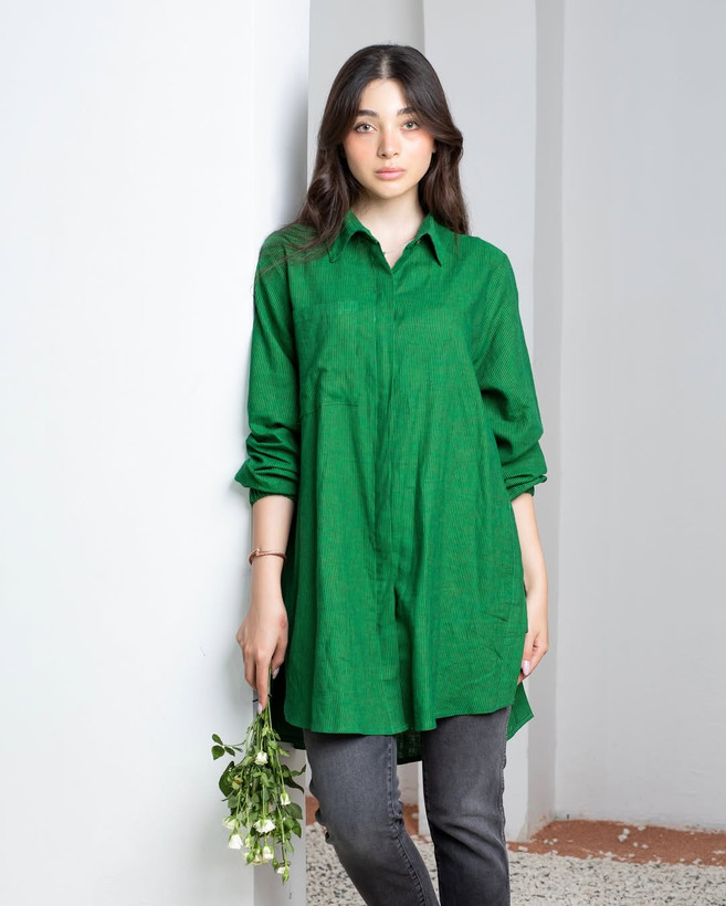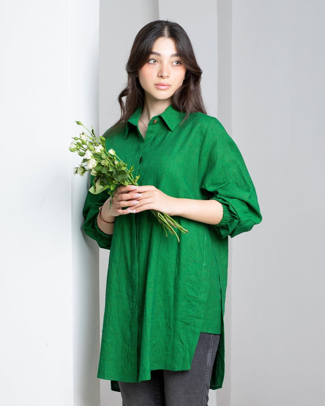 شومیز لینن فری سایز راه راه ریز سبز