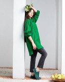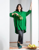 شومیز لینن با سایزبندی فری مناسب تا دور سینه ۱۱۲ سانتیمتر. قد شومیز در قسمت جلو ۷۸ و در قسمت پشت ۸۲ سانتیمتر. رنگ بندی: دو رنگ، راه راه سبز و راه راه زرد.