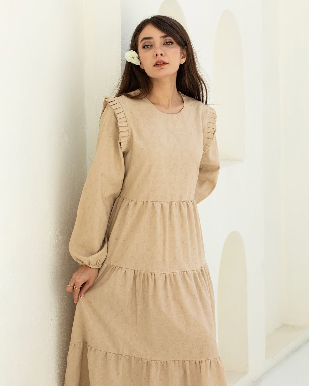 پیراهن لینن با سایزبندی فری مناسب تا دور سینه ۱۰۴ (سایز ۳۶ تا ۴۲) و قد ۱۲۵ سانتیمتر. رنگ بندی: شش رنگ مشکی، زرشکی، بنفش، قهوه ای، کرم و سبز. جنس: لینن وارداتی.