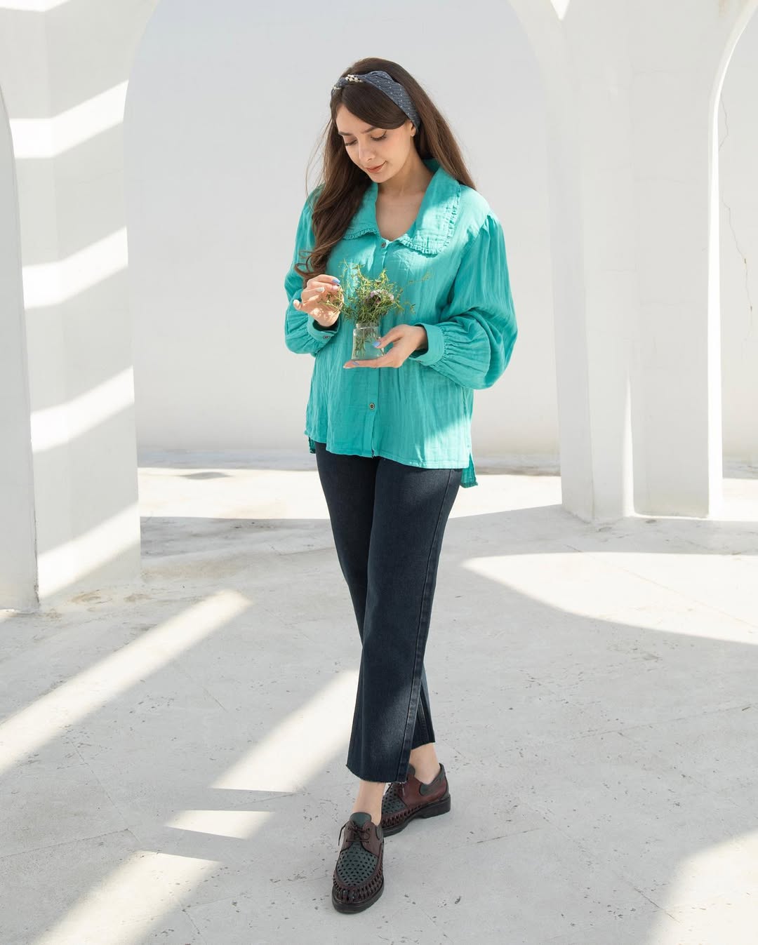 شومیز خنک فری سایز فیروزه ای