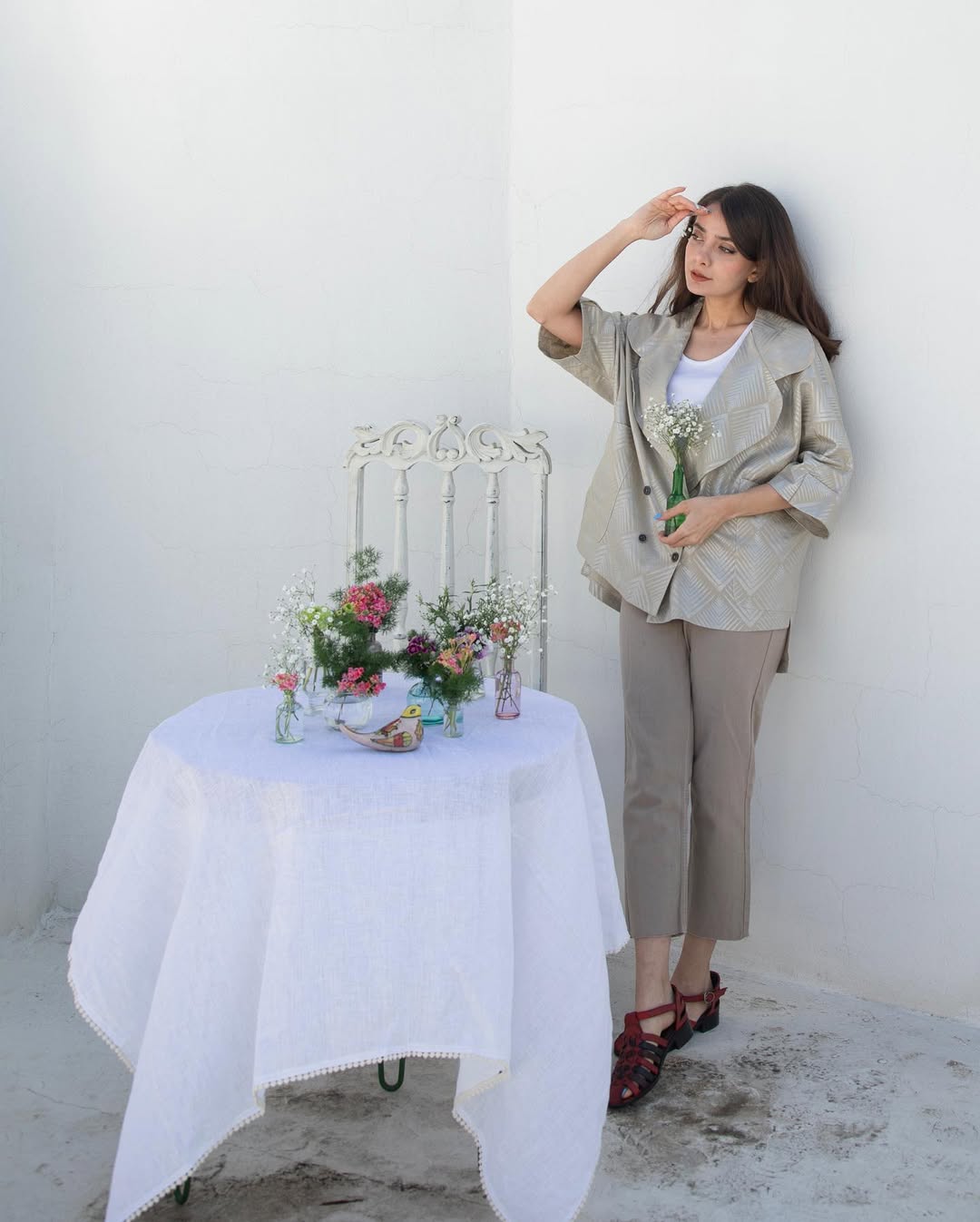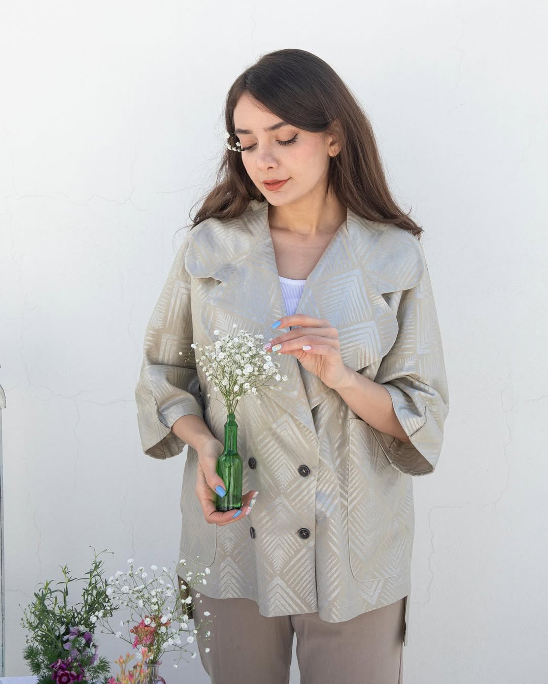 کت تک با سایزبندی فری سایز مناسب تا دور سینه ۱۰۵سانتیمتر (سایز ۳۶ تا ۴۰) و ۱۲۰ سانتیمتر (سایز ۴۲ تا ۴۶) جنس نخ وارداتی. قد کت: در قسمت جلو ۶۶ و در قسمت پشت ۷۷ سانتیمتر. رنگ بندی: سه رنگ طوسی، کرم و شیری.