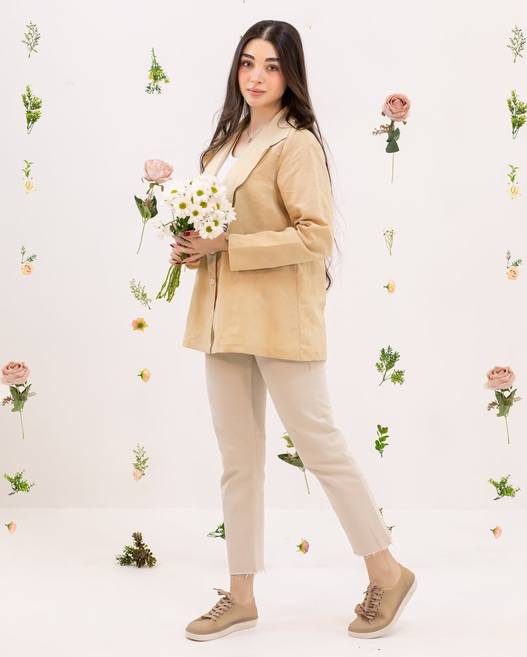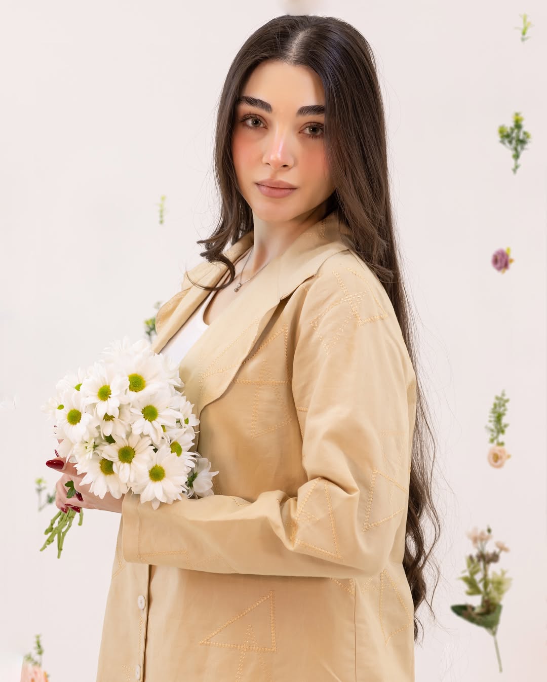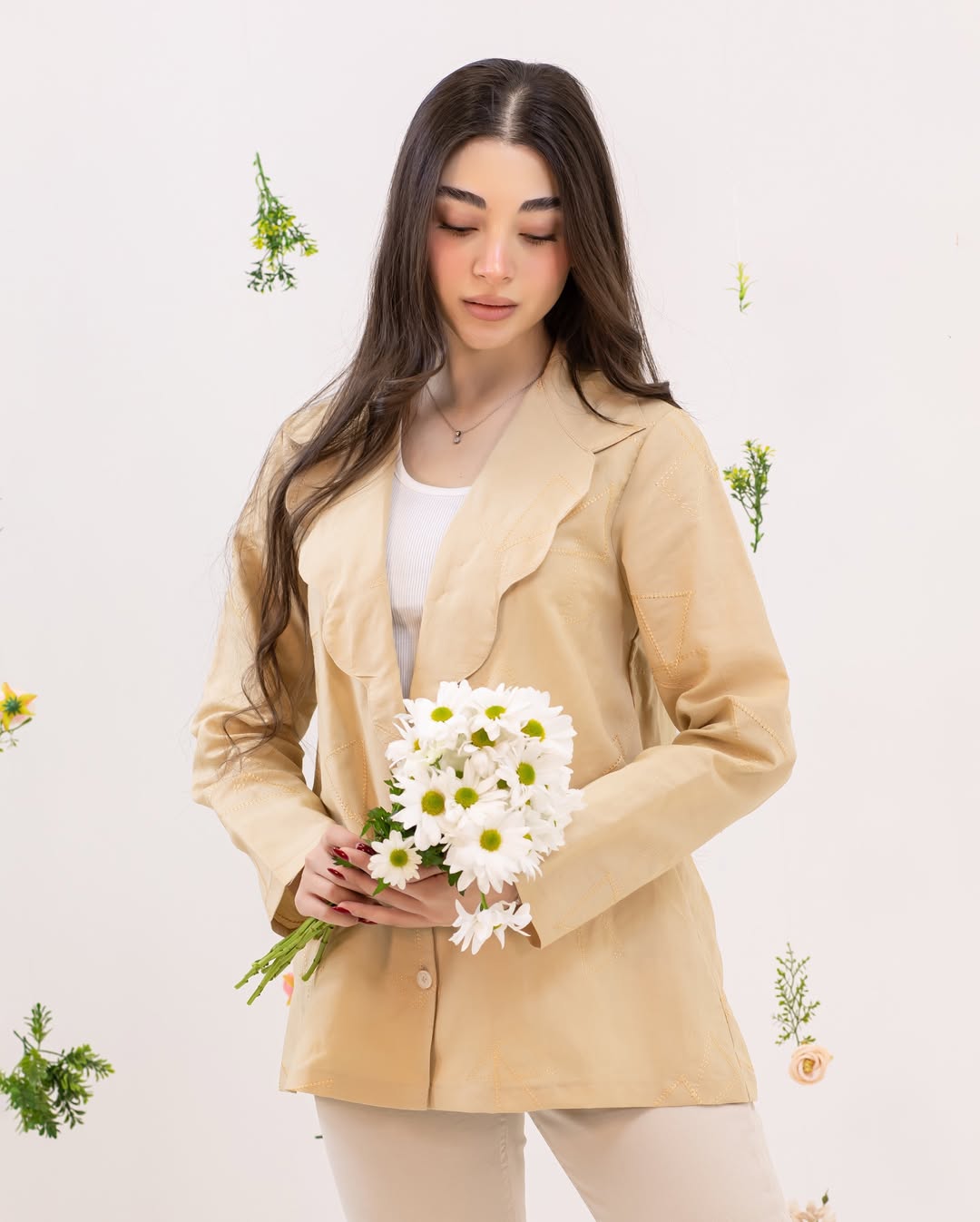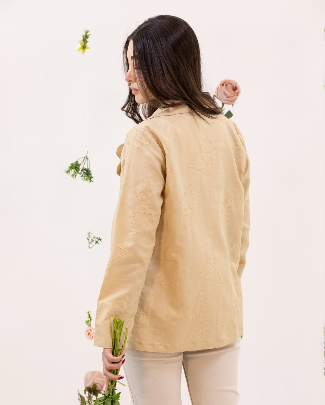 کت لینن خامه دوزی شده رنگ کرم نخودی کد ۲۶۷